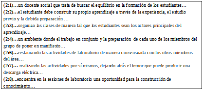 Para el caso del informante clave B, este fue bastante explícito en sus respuestas, da a entender que es un docente que trata de buscar el equilibrio en los estudiantes durante su formación (1:1), lo cual es necesario al momento de trabajar en el aula de clases y más aun con un curso de laboratorio de Física, se ve que este docente da oportunidad para que el estudiante construya su propio aprendizaje, algo que en el ámbito educativo siempre se trata de alcanzar, también puntualiza que para evaluar las condiciones del laboratorio se debe realizar en consenso con los demás profesores del área (2:6), también señala que es de iniciativa permitir que el estudiante rompa esa barrera de “miedo” al enfrentarse con los equipos de electricidad, esto es un punto sumamente importante, puesto que hay que brindarle al estudiante esa seguridad y confianza al momento de realizar algún montaje experimental.