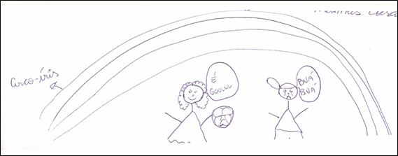 Durante a realização da oficina foi enfatizada a importância de percebermos a sexualidade não como algo biologizante, assim como afirmam Moizés e Bueno (2010): “[...] a sexualidade para ser compreendida, não pode ser separada do indivíduo holístico, posto que é moldada nas relações que o sujeito estabelece, desde a mais tenra idade, consigo mesmo e com os outros.” (MOIZÉS; BUENO, 2010, p. 205). Tal análise foi observada em uma das questões, pois era focada em realizar um comentário ou ilustração sobre o livro e/ou a oficina. Apesar de uma maneira “tímida”, ilustração bem pequena, uma dessas observações foi realizada totalmente na visão anatômica (Figuras 1 e 2).