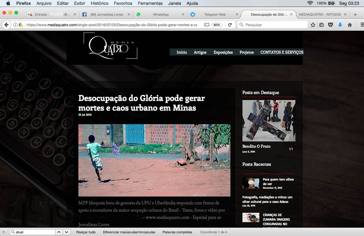 A MediaQuatro é empresa/marca que vêm publicando trabalhos de jornalismo independente na imprensa alternativa e na grande mídia desde 2002. Das fotos em película e textos em veículos impressos e em site gratuito na Internet, seus sócios passaram a contribuir com novas iniciativas de jornalismo digital como o portal Outras Palavras a partir de 2011 e a Agência Pública em 2012. Três anos depois ajudaram a fundar o coletivo Jornalistas Livres, com foco principal na divulgação de seus trabalhos jornalísticos inéditos por meio das redes sociais como Facebook e Twitter. O artigo conta essa trajetória analisando os impactos, repercussões e alcance das fotos, vídeos, reportagens e coberturas em cada um desses meios.