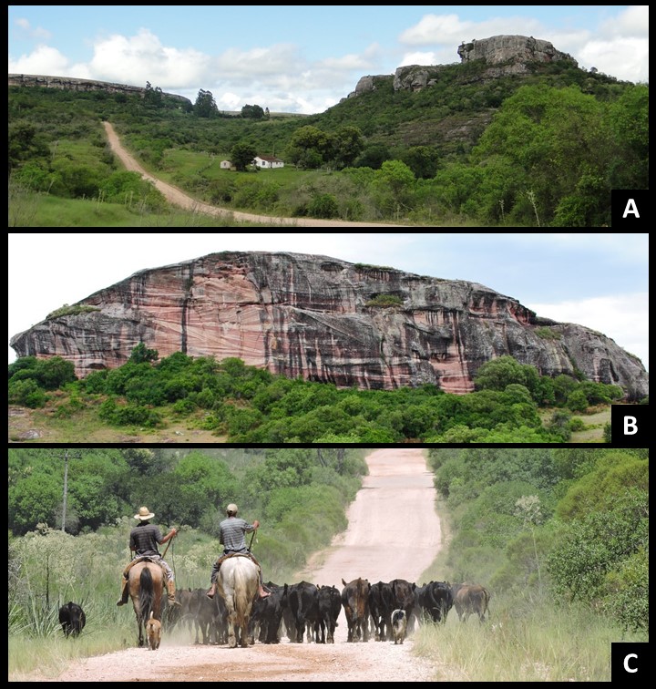 A região das Pedras das Guaritas, no centro-sul do Rio Grande do Sul, é cruzada pela RS-625, a ‘estrada velha da mina’, uma estrada não pavimentada que conecta os municípios de Caçapava do Sul e Santana da Boa Vista. Por sua singular beleza cênica, por sua importância geológica e por preservar a cultura e a identidade dos pecuaristas familiares do pampa serrano, pode ser considerada uma 'estrada paisagística’. Sugere-se aqui uma integração entre as abordagens do geoturismo e da interpretação da paisagem para a valorização, a conservação e a promoção do trecho estudado como um roteiro geoturístico, com mirantes e outras estruturas, para o qual foi confeccionado um folheto artístico e interpretativo.Downloads