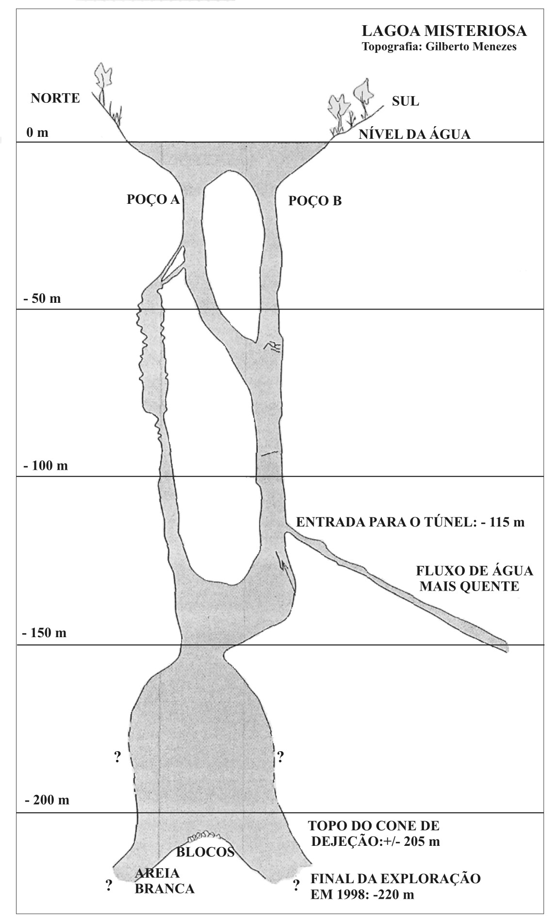 A Cavidade Natural Lagoa Misteriosa é a caverna inundada mais profunda do Brasil, com mais de 220 m de coluna d’água. Suas características geológicas únicas, aliadas à sua biodiversidade, beleza cênica e ciclos anuais de floração de algas, conferem a este ecossistema um status único no Brasil. Entre os anos de 2005 e 2009 foram realizados uma série de estudos com intuito de embasar um plano de manejo para a cavidade, envolvendo coletas de dados do nível da água da lagoa, pluviometria, temperatura, análises físico-químicas e biológicas da água, visibilidade, entre outros. A partir destes estudos foi possível formular um modelo que explica a sazonalidade da floração de algas responsáveis pelo turvamento das águas durante o verão. Os resultados demonstraram que a pluviosidade e quedas bruscas de temperatura seriam os principais agentes que atuam sobre o bloom de algas, relacionado ao carreamento de nutrientes e aumento da produção primária.Downloads