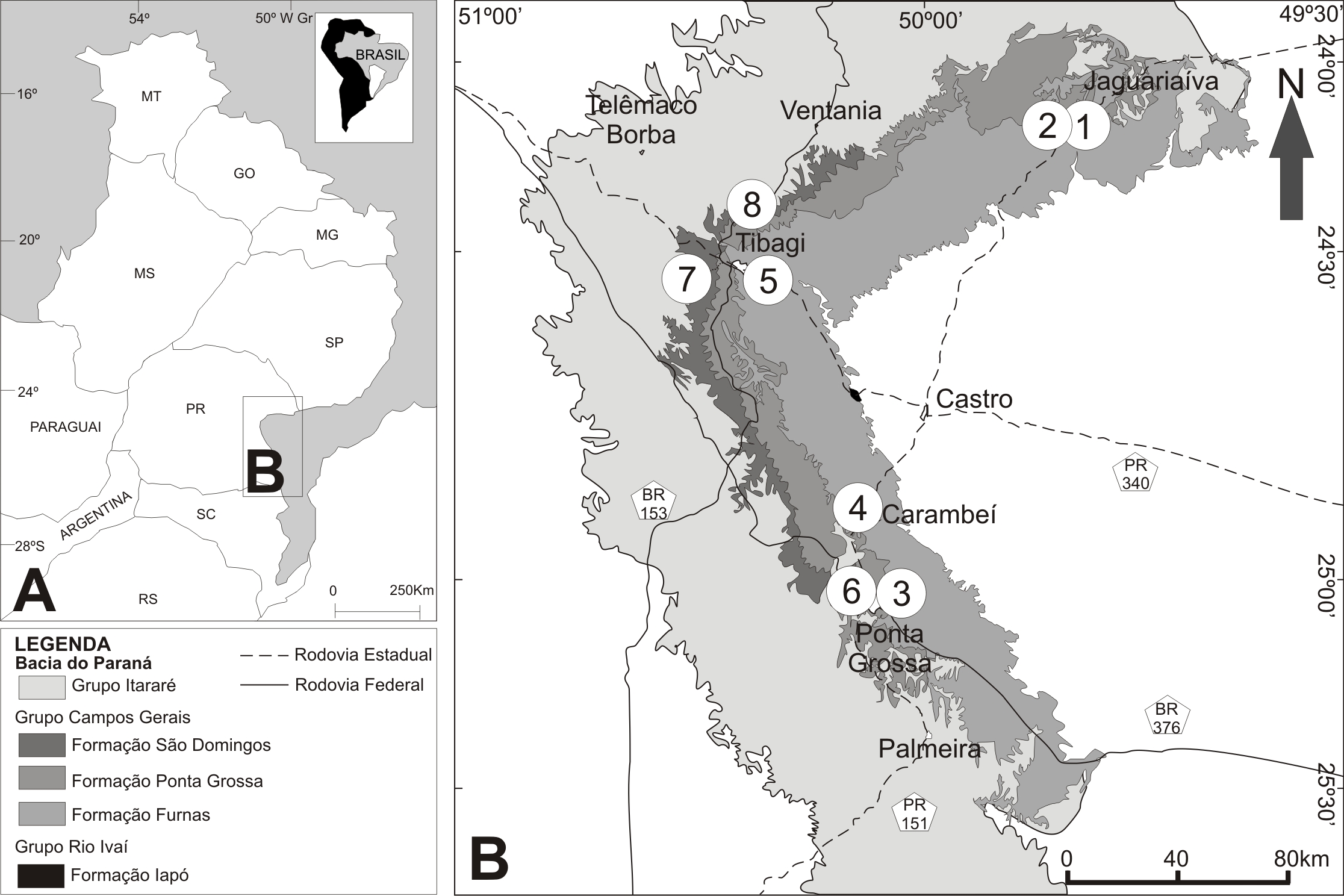Nos últimos anos, a execução de trabalhos de campo no município de Tibagi-PR, têm possibilitado a prospecção de fitofósseis bem preservados na Formação São Domingos (Bacia do Paraná), resgatando o interesse científico da paleobotânica nesta unidade. O presente trabalho objetivou caracterizar a evolução do conhecimento sobre a paleoflora devoniana da Bacia do Paraná, com base no histórico das pesquisas no Brasil e apresentar as perspectivas futuras a partir de novos achados em seções recentemente levantadas do Devoniano Médio no estado do Paraná. Foram identificados e descritos três táxons ocorrentes nos afloramentos Sítio Wolff e Itáytyba (Formação São Domingos), a saber: Spongiophyton, Palaeostigma e Haplostigma. A continuidade das pesquisas com este material fóssil pode colaborar na compreensão nos estudos evolutivos e paleoecológicos das plantas, além de fornecer dados relevantes para interpretações dos sistemas deposicionais e reconstituições paleofitogeográficas.