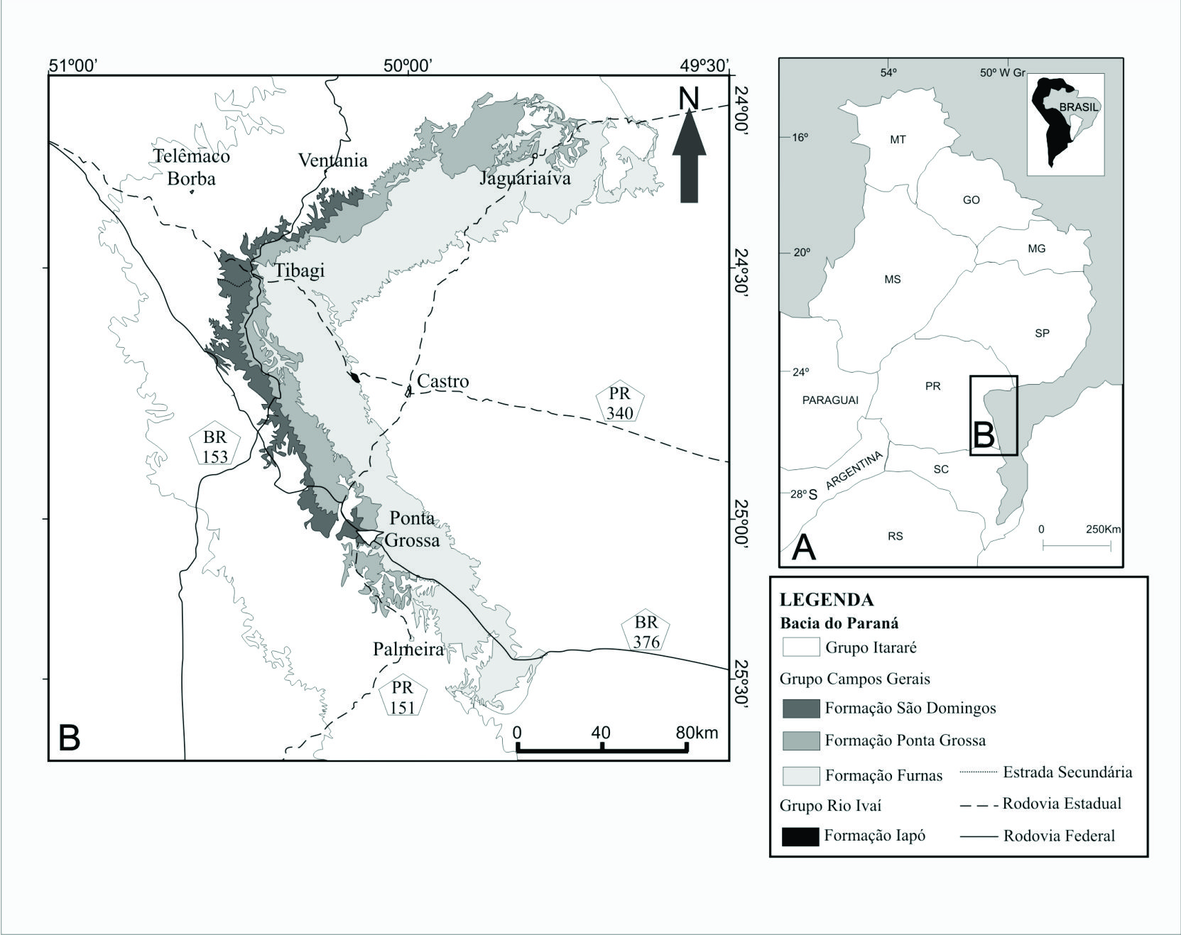 - Figura 1.Mapa geológico da área de estudo. (adaptado de GRAHN et al., 2011).